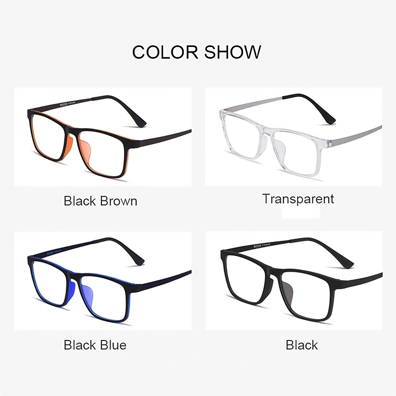 • Ultra-Light TR90 Frame Large Face Glasses Frame Retro Square Eyewear